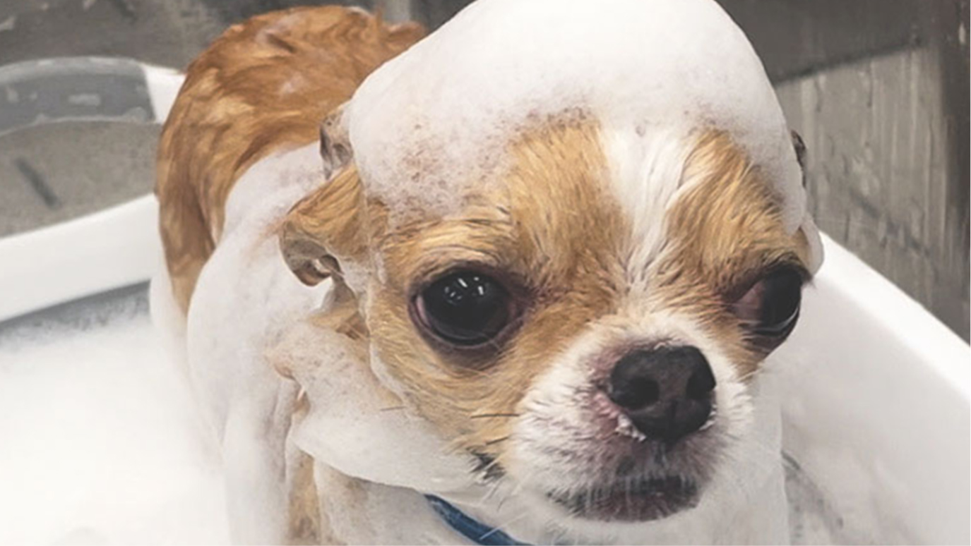 し、皮膚や被毛の汚れをワンちゃんへの摩擦、刺激、負担を少なく剥がし取ることができます。
